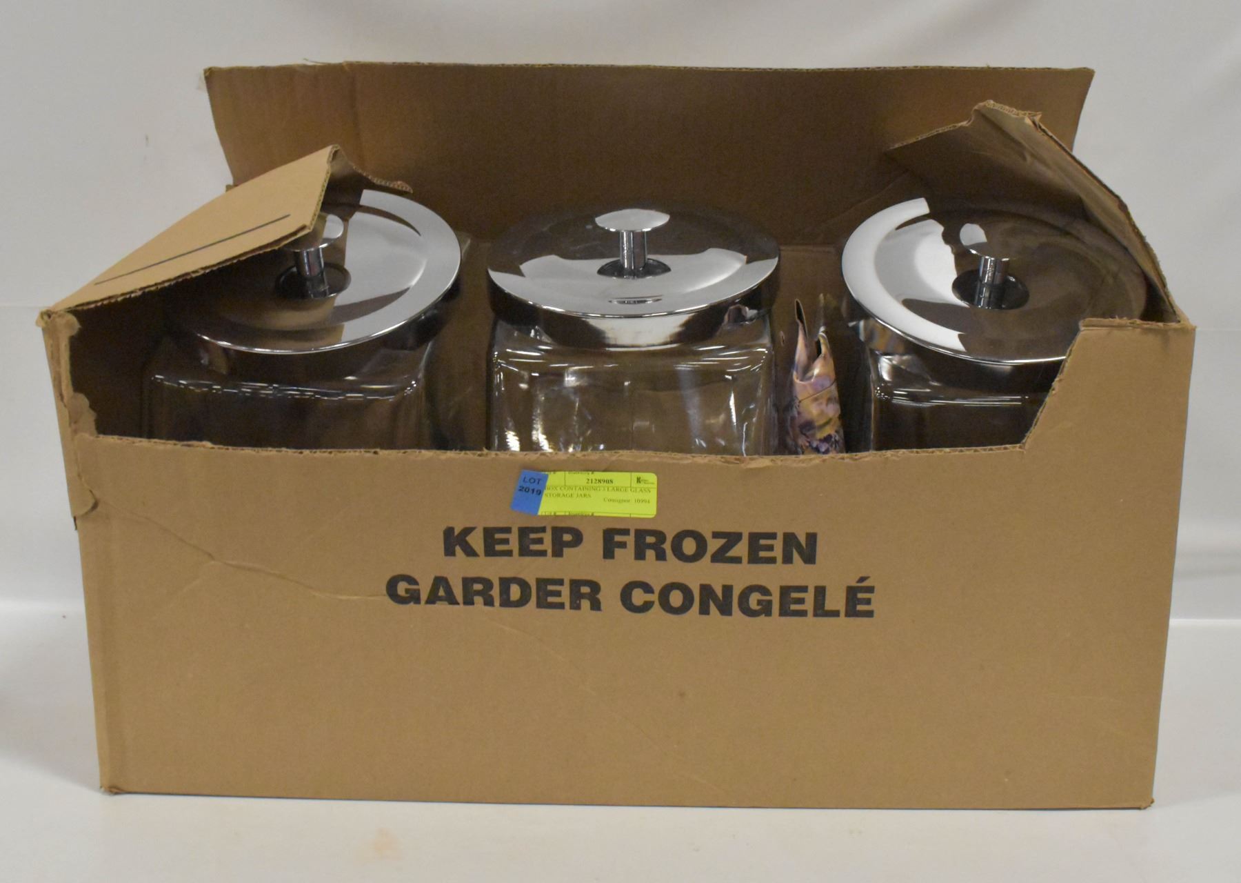 BOX CONTAINING 3 LARGE GLASS STORAGE JARS