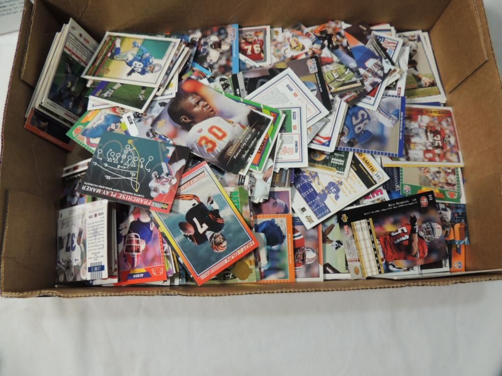 BOX FOOTBALL PLAYER CARDS MIXEDLOSE CARDS BOX LOT FOOTBALL PLAYER CARDS. TRADING CARDS. AS SHOWN SEE PHOTO FOR MORE DETAILS.