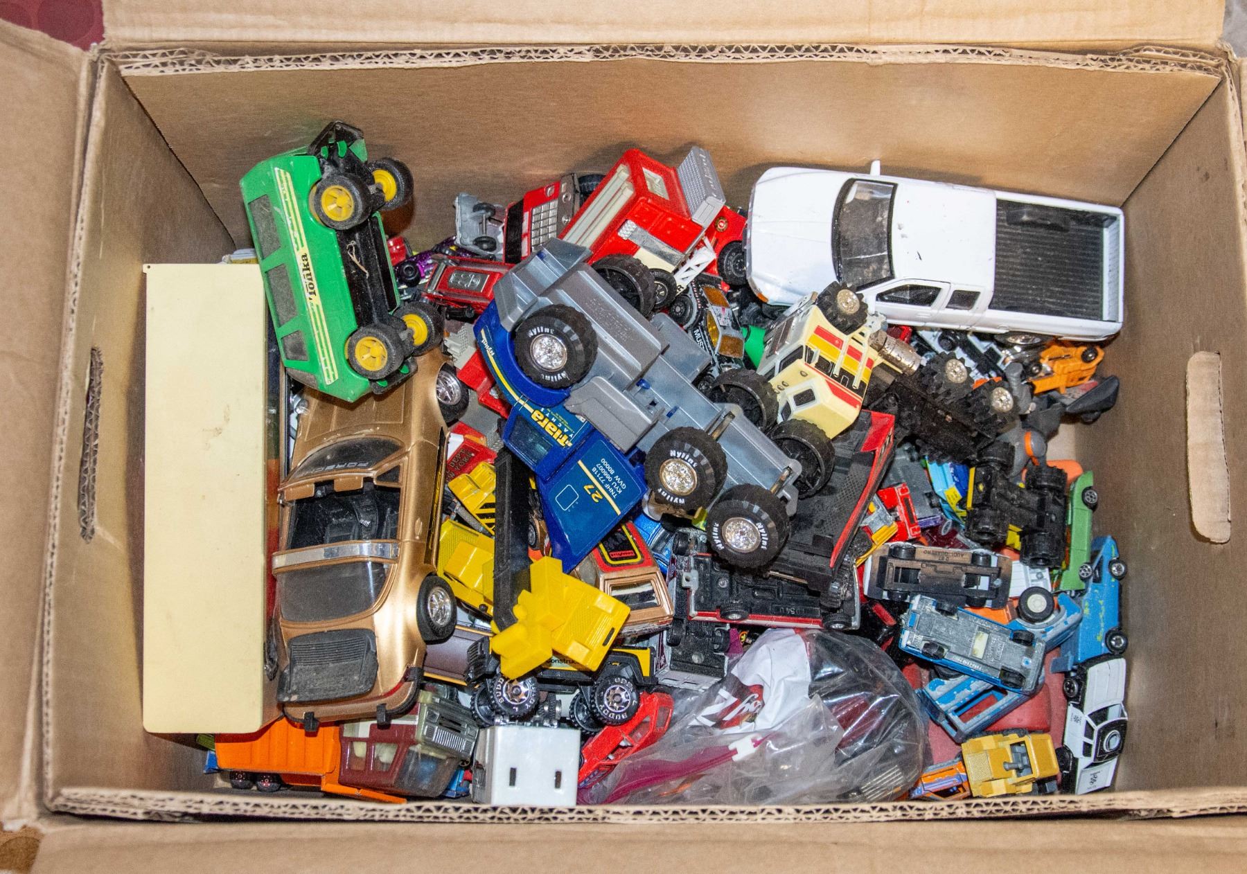 BOX FULL ASSTD VTG TOY CARS