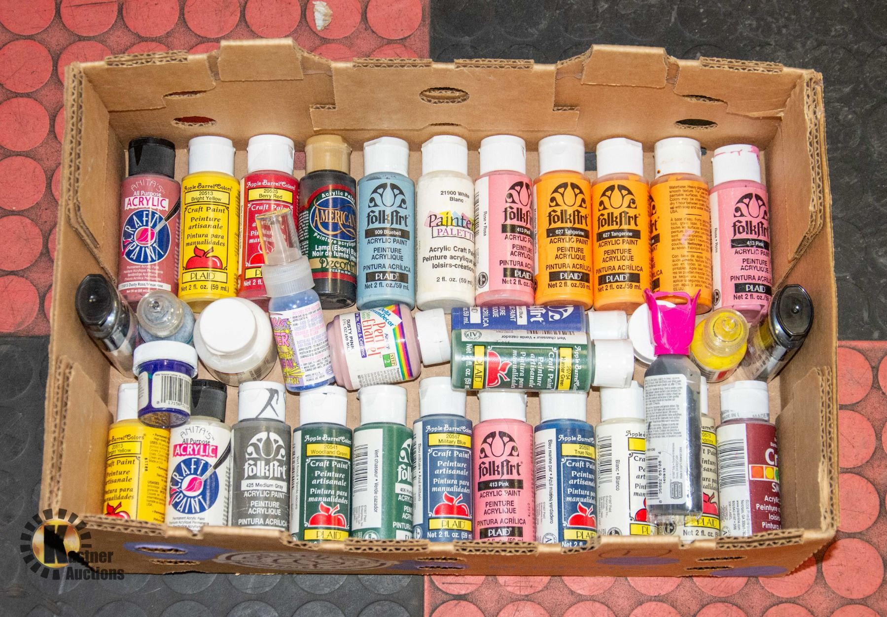 BOX FULL OF ACRYLIC PAINTS - COUNT OF 34