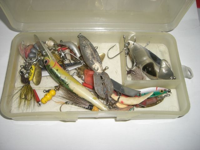 BOX FULL OF APPROX. 20 TOTAL OLD FISHING LURES!! LURES CAME OUT OF SAFE!! ***Coin, Currency & All Items Listed in this auction - Grades, Conditions and Values are not Safe Deposit Coins LLC Responsibilty. Grades, Condition and Values are determined by Consigner(s) & Buyers ONLY