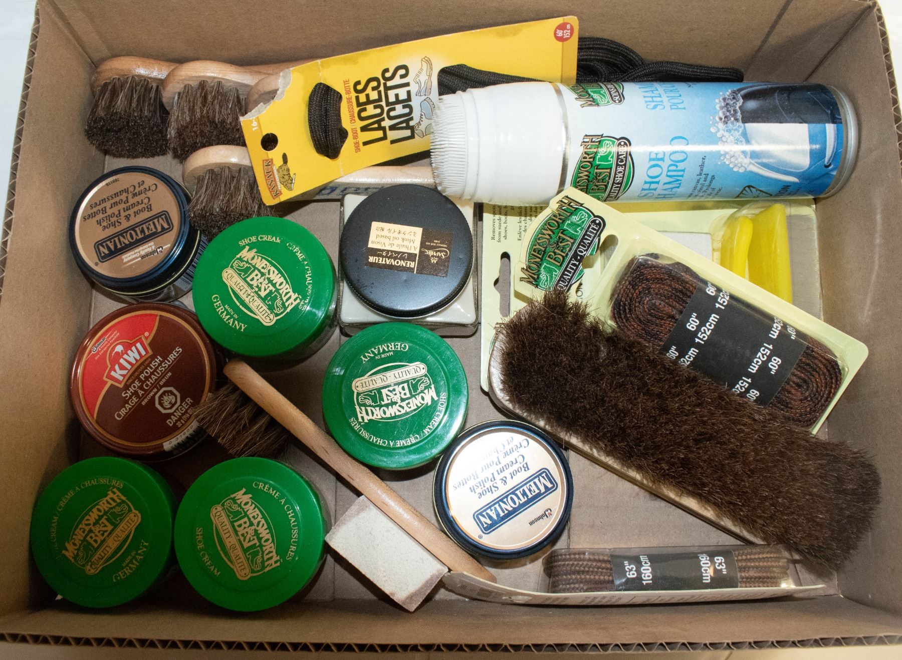 INCL. BRUSHES, CREAM POLISHES, LEATHER CREAM PROTECTOR, LACES, ETC. **ALL ITEMS MUST BE REMOVED BY 5PM SATURDAY, FEBRUARY 18TH 2023. ALL REMAINING ITEMS WILL BE SUBJECT TO A $6.00 PER DAY STORAGE CHARGE. ANY ITEMS REMAINING AFTER MONDAY, MARCH 6TH, 2023 WILL BE CONSIDERED FORFEITED. NO REFUNDS WILL BE ISSUED FOR FORFEITED ITEMS. TO SCHEDULE A PICK UP APPOINTMENT CLICK HERE