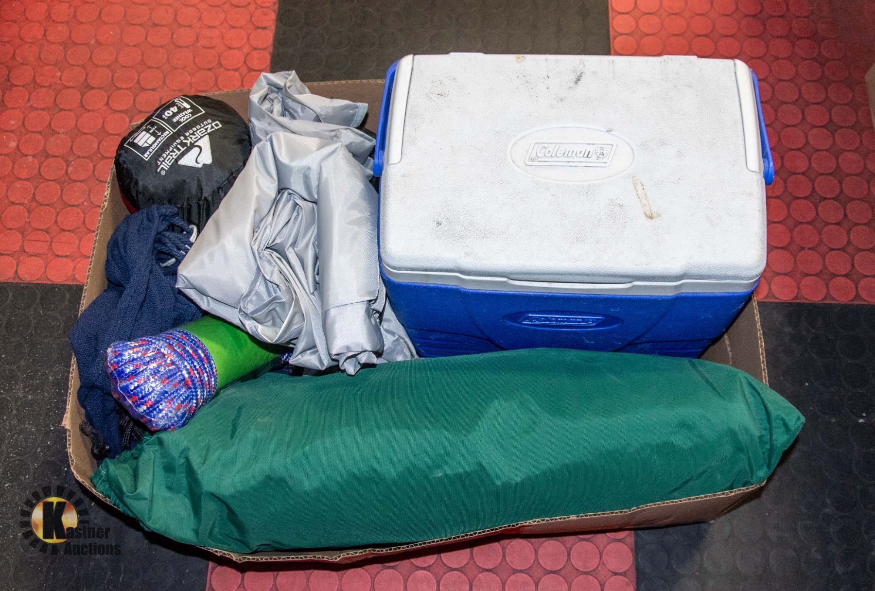 BOX FULL OF CAMPING GEAR INCL. TENT,