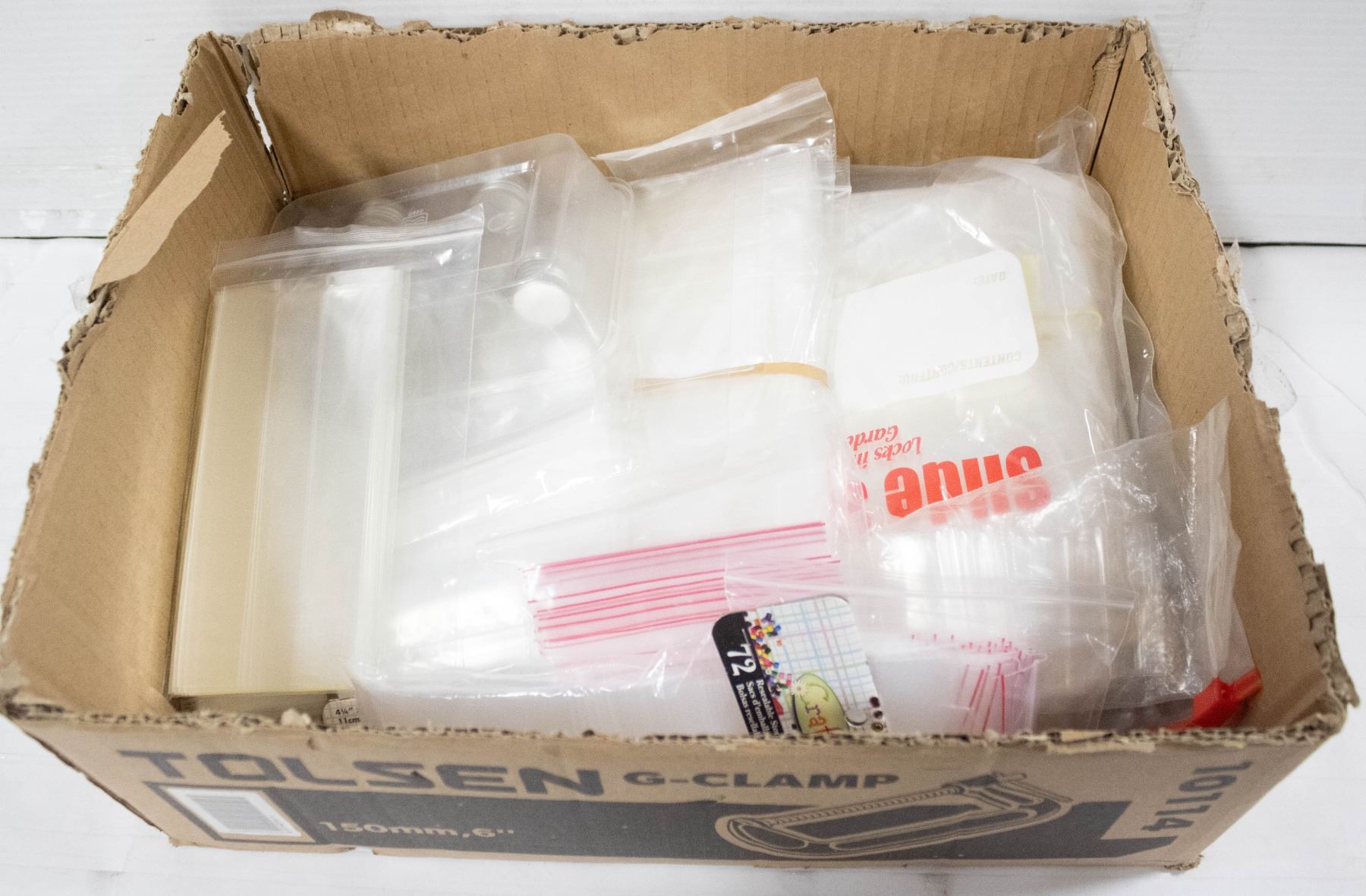 BOX FULL OF CRAFTING PLASTIC BAGS AND STORAGE
