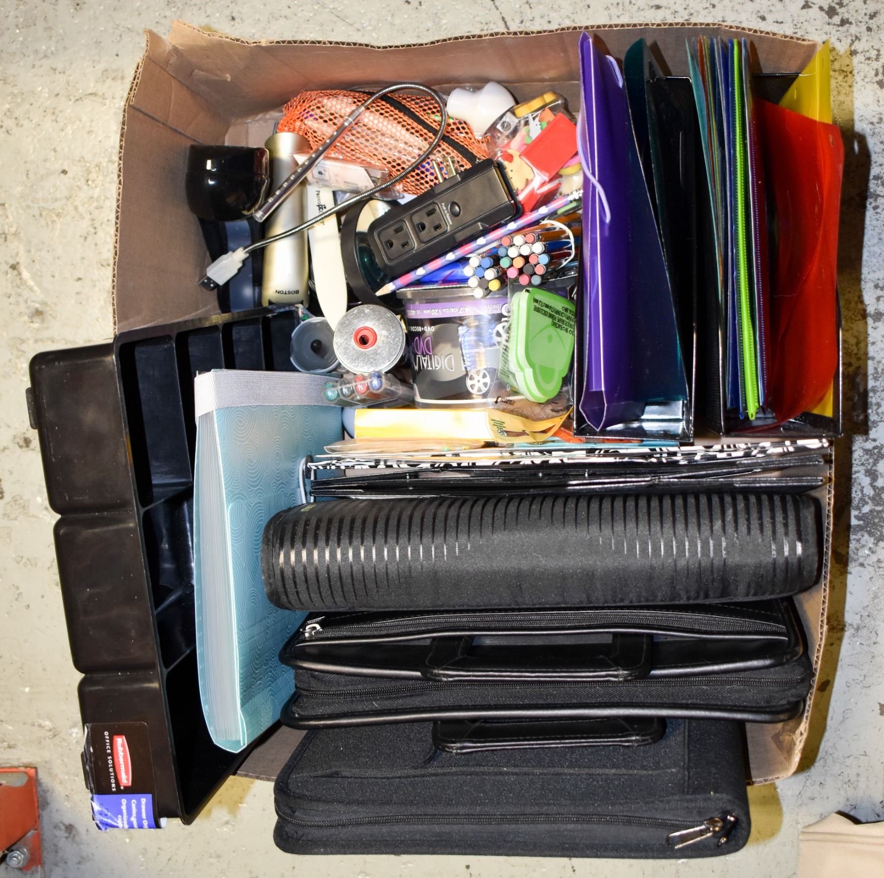 BRIEF CASE, DOCUMENT ORGANIZER, BINDER, METAL UPRIGHT FILE ORGANIZERS, DVD-R DIGITAL MOVIE DISCS, TAPE DISPENSER, STAPLER, POST-IT NOTES, STAEDTLER MARKERS, LABELS, SERVICE BELL, FANCY PAPERCLIPS, DESK TRAY ORGANIZER AND MORE