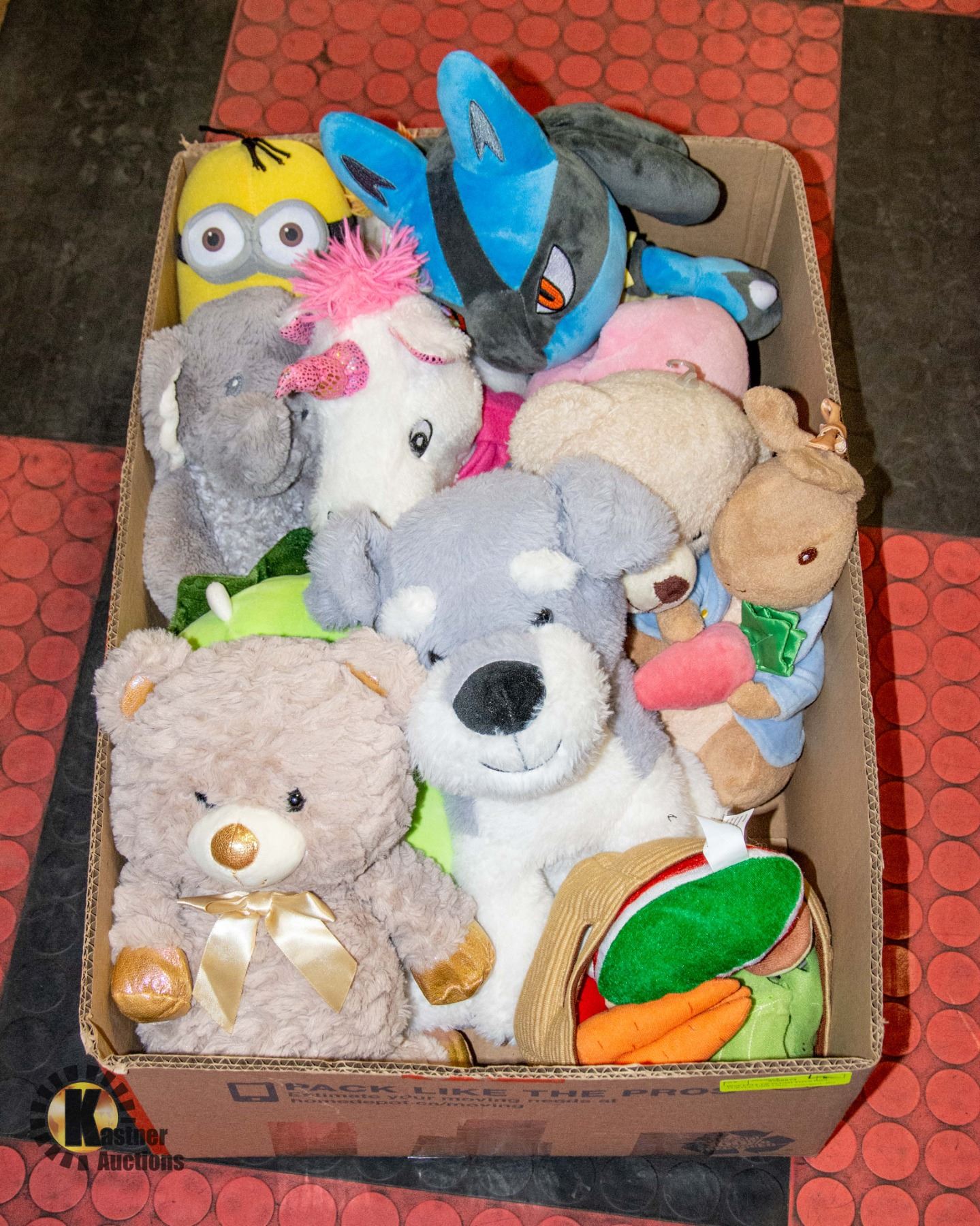 BOX FULL OF PLUSH TOYS INCL. TURTLE, UNICORN,