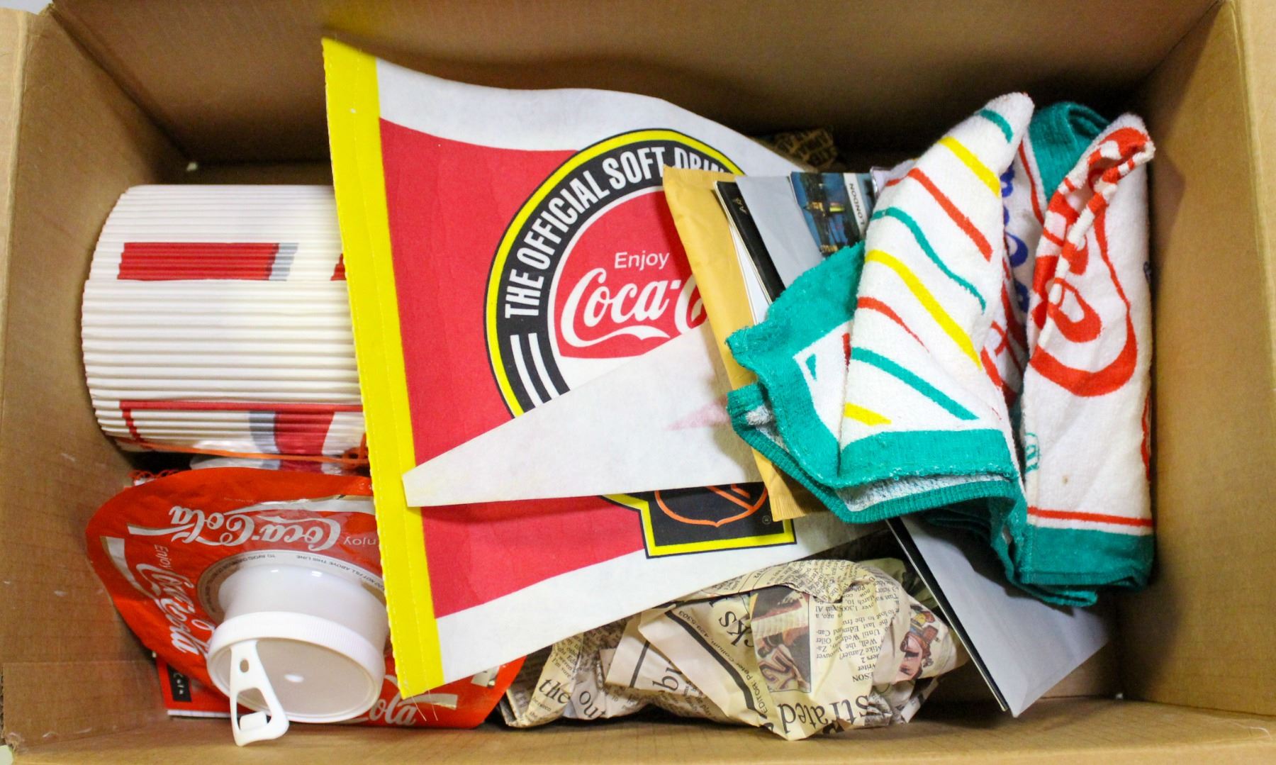 BOX FULL OF VINTAGE COKE COLLECTIBLES