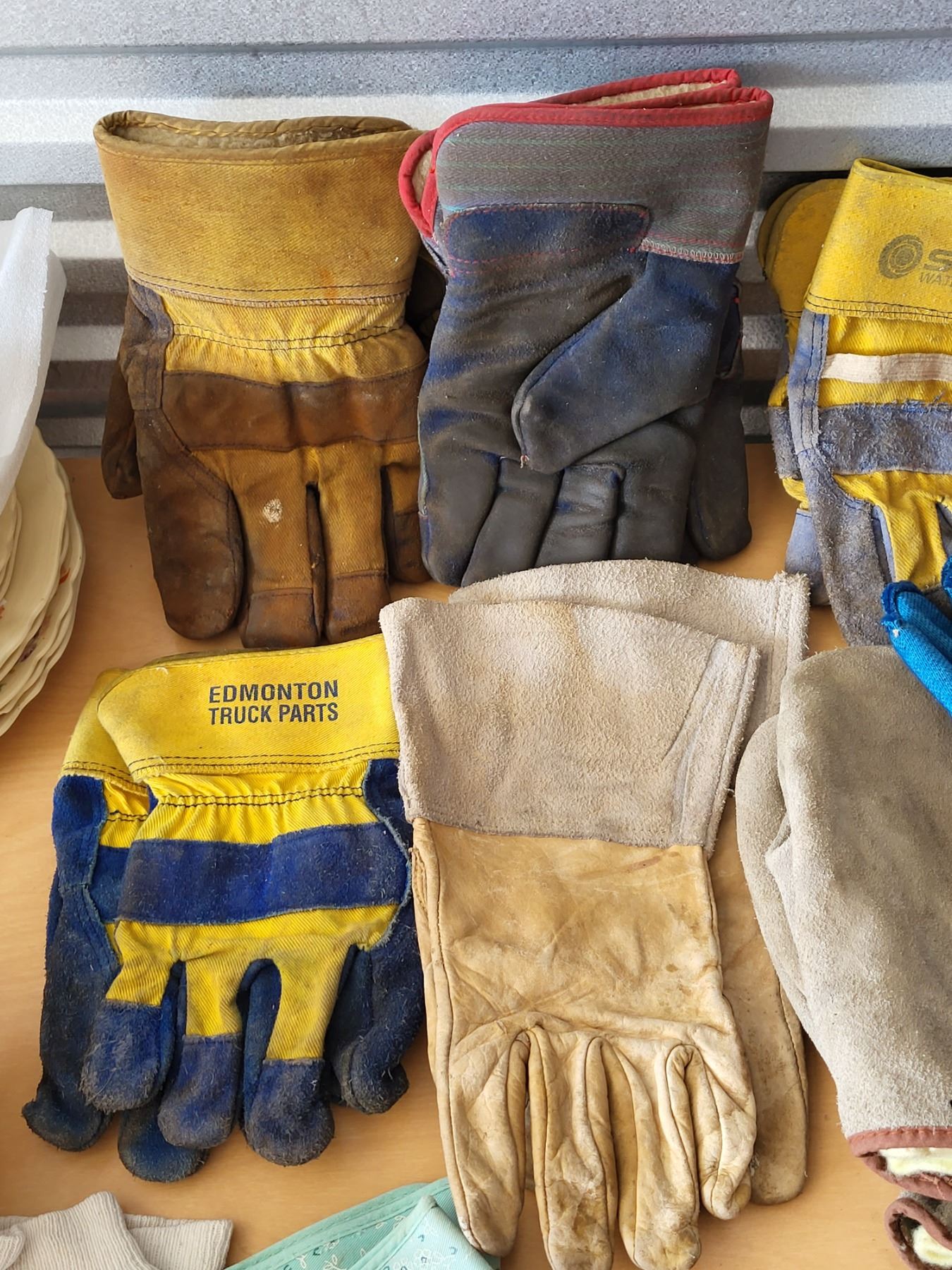 BOX FULL OF WORK GLOVES. ALL SORTS.