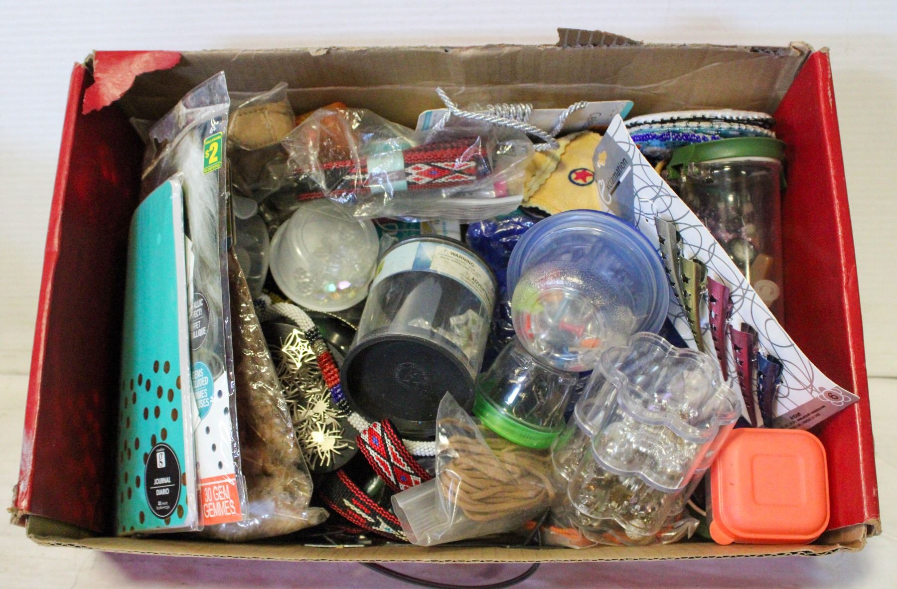 BOX LOADED WITH VARIOUS CRAFTING SUPPLIES