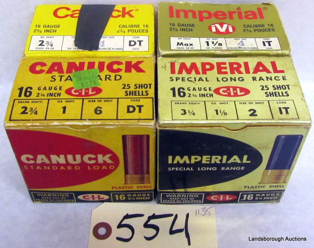 25 RNDS IMPERIAL 2 3/4" 1 1/8 OZ SHOT #4, 25 RNDS IMPERIAL 2 3/4" 1 1/8 OZ SHOT #2, 25 RNDS CANUCK 2 3/4" 1 OZ SHOT #4, 15 RNDS CANUCK 2 3/4" 1 OZ SHOT #6, PLUS 3 VARIOUS ROUNDS