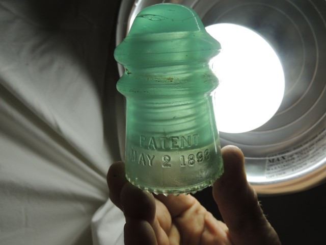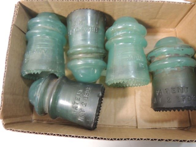LOT OF 5 RARE JADE OR CUSTARD OR MILKY GREEN BLUE INSULATORS, AS SHOWN. ALL FOR ONE MONEY.