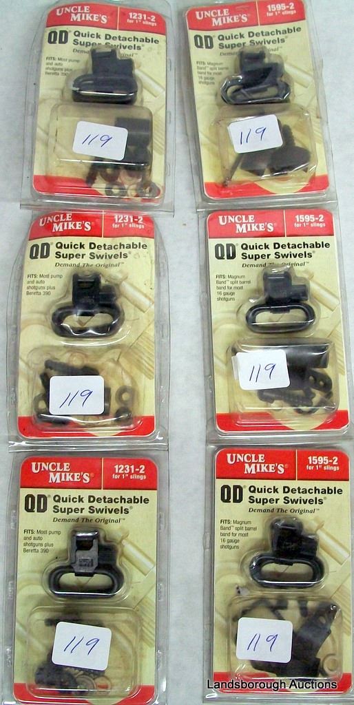 SIX SETS OF QD SWIVELS AND BASES. FOR PUMP AND AUTO SHOTGUNS, BERETTA 390, AND 16 GA SHOTGUNS.