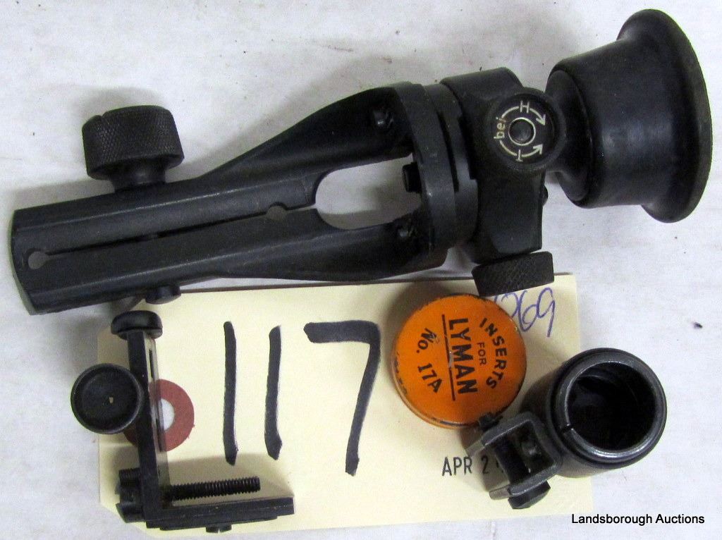ONE LYMAN FRONT GLOBE SIGHT WITH INSERTS, AND ONE WALTHER PEEP