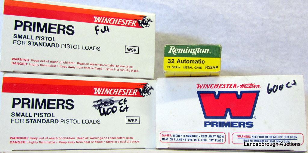 50 .32 AUTO BY REMINGTON, 1400 WINCHESTER SMALL PISTOL PRIMERS, 600 WINCHESTER LARGE RIFLE #8 1/2 120