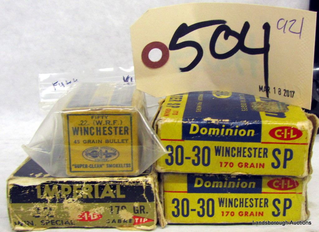 47 RNDS WINCHESTER .22 W.R.F IN VINTAGE BOX, 20 RNDS IMPERIAL 32 WINCHESTER SPECIAL, 39 RNDS DOMINION 30-30 WINCHESTER SP