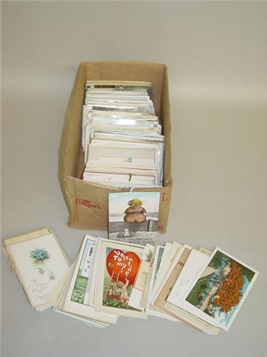 BOX LOT APPROX. (550) MISC. POSTCARDS INCLUDING MANY HOLIDAYS (CHRISTMAS, VALENTINES, EASTER, THANKSGIVING), COMIC CARDS, NEW ENGLAND ADVERTISING, ETC.