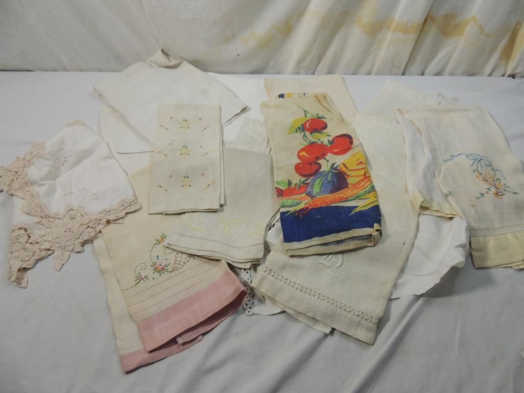 ANTIQUE NAPKINS, KNITED, CROSS STITCH TOWELS, KITCHEN TOWELS, VINTAGE LINENS, VINTAGE DOLIES, VINTAEG DECORATIVE, LACE, HAND STITCHED, ASSORTED STYLES, VINTAGE, RETRO, ELEGANT, TABLEWARE, VINTAGE LINENS, CROSS STITCH, CROCHET, FANCY WORK, KNIT, LACE, AS SHOWN SEE PHOTO FOR MORE DETAILS