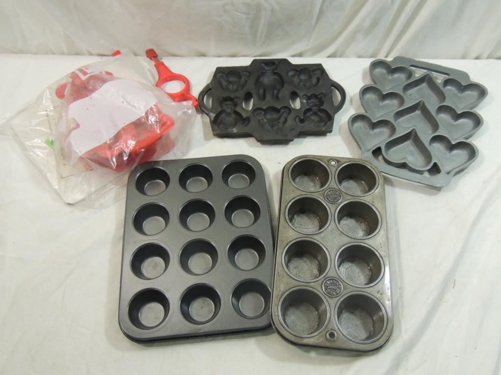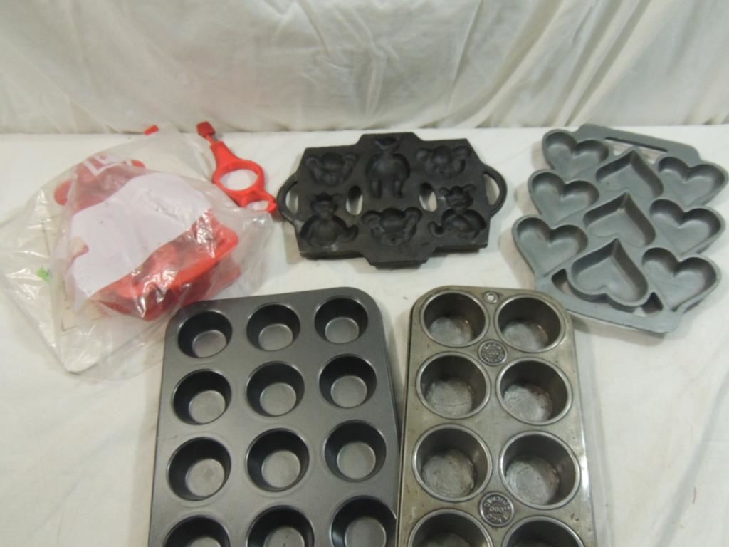 CUPCAKE PAN, CAKE MOLDS, BAKING TOOLS, BAKING ITEMS, CAST IRON MOLDS KITCHEN ACCESSORIES, AS SHOWN SEE PHOTO FOR MORE DETAILS.