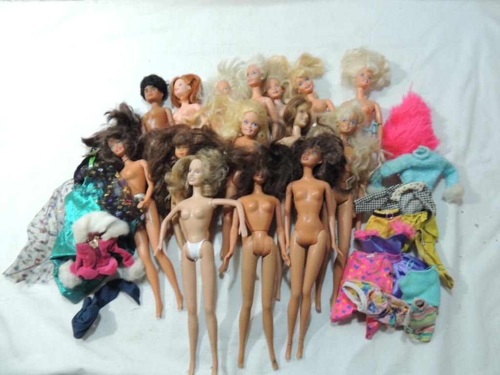 BOX LOT ASSORTED BARBIE DOLLS. NEWER AND OLDER VERSIONS. OUTFITS ON SOME. FAIR CONDITION. MATTEL BARBIE COLLECTIBLES. TOY BARBIES. DOLLS. BARBIES AND OTHER DOLLS. BARBIE AND FRIENDS. AS SHOWN SEE PHOTO FOR MORE DETAILS.