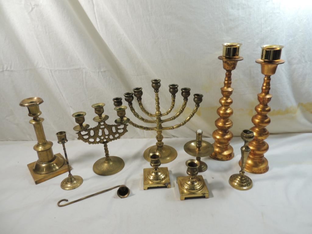 ASSORTED CANDLESTICKS BRASS CANDLE STICKS VINTAGE CANDLESTICKS AS SHOWN SEE PHOTO FOR MORE DETAILS.