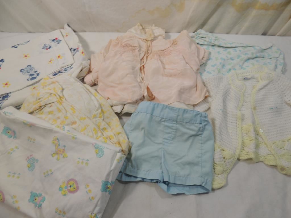 VINTAGE CLOTHES, DOLL CLOTHES, CHILDRENS CLOTHES, COLLECTIBLE, ASSORTED STYLES, DOLL & CHILDRENS CLOTHING, AS SHOWN SEE PHOTO FOR MORE DETAILS.