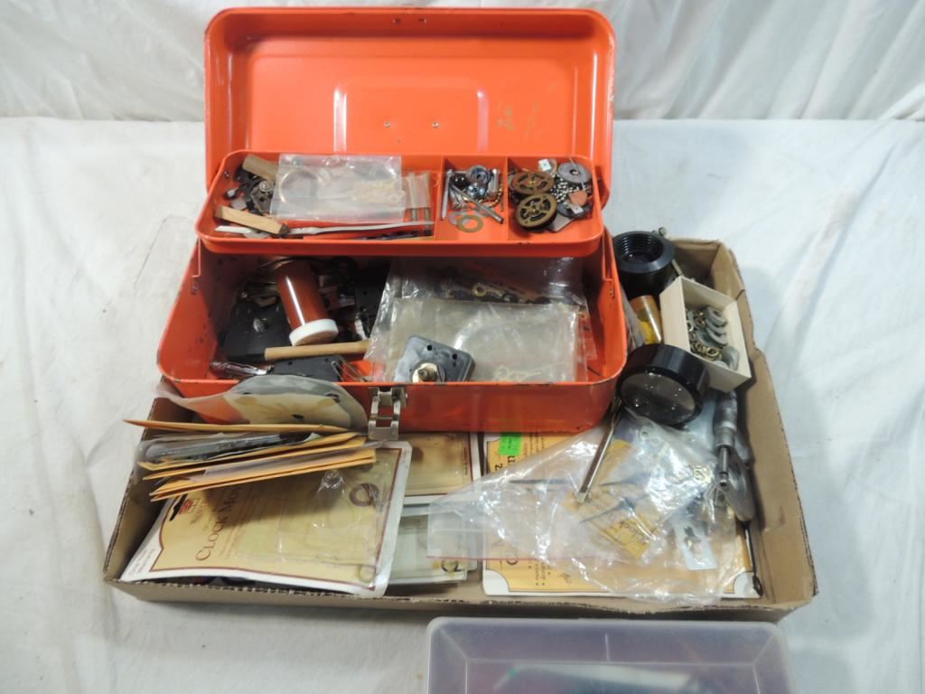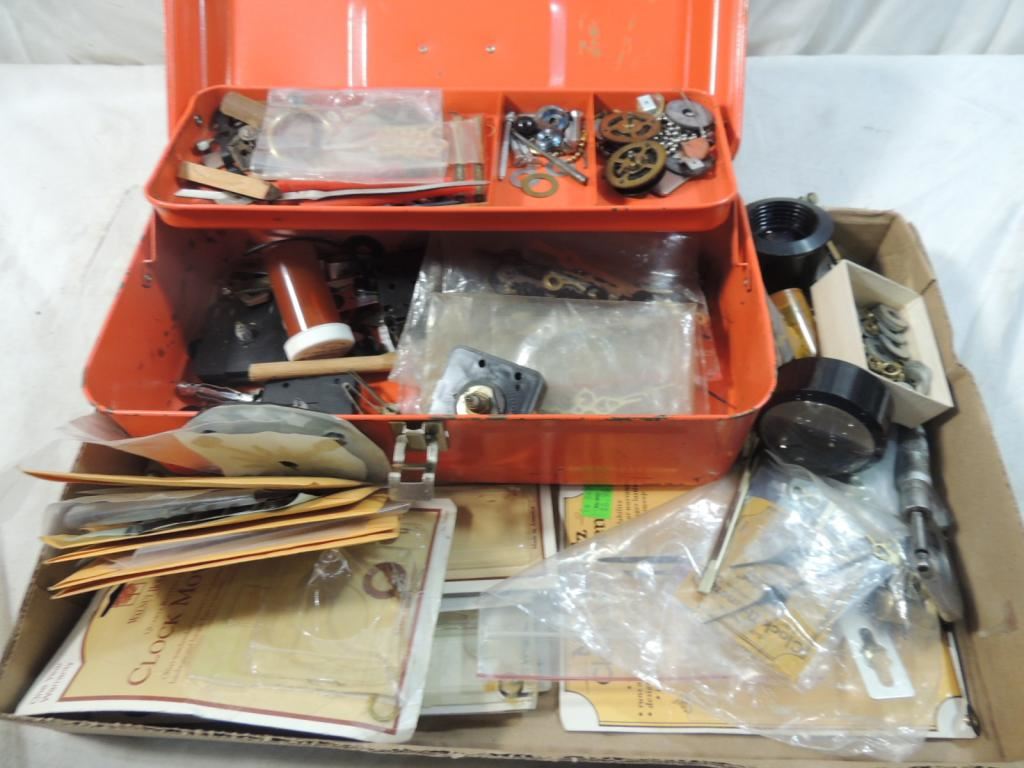 CLOCK REPAIR, CLOCK PARTS, ASSORTED CLOCK REPAIR PARTS, VINTAGE CLOCKS VARIOUS PARTS, NUMBERS, AS SHOWN SEE PHOTO FOR MORE DETAILS.