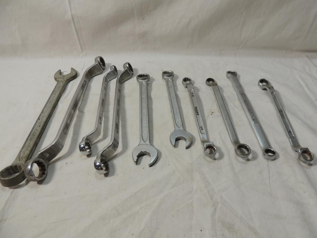BOX ASSORTED DOUBLE BOX END WRENCH. AS SHOWN. SEE PHOTO FOR MORE DETAILS.