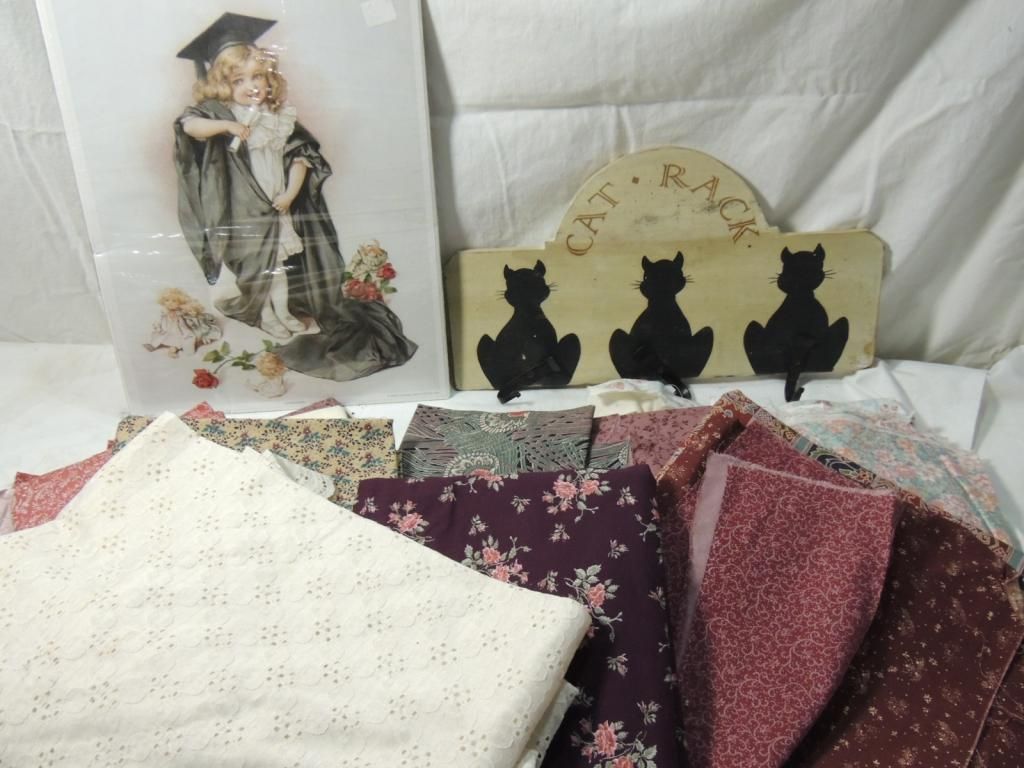CAT RACK CAT HOOK SIGN AND LITTLE GIRL PLAYING DRESS UP POSTER WITH ASSORTED MIXED. FABRIC CRAFTERS DREAM. AS SHOWN SEE PHOTO FOR MORE DETILAS.