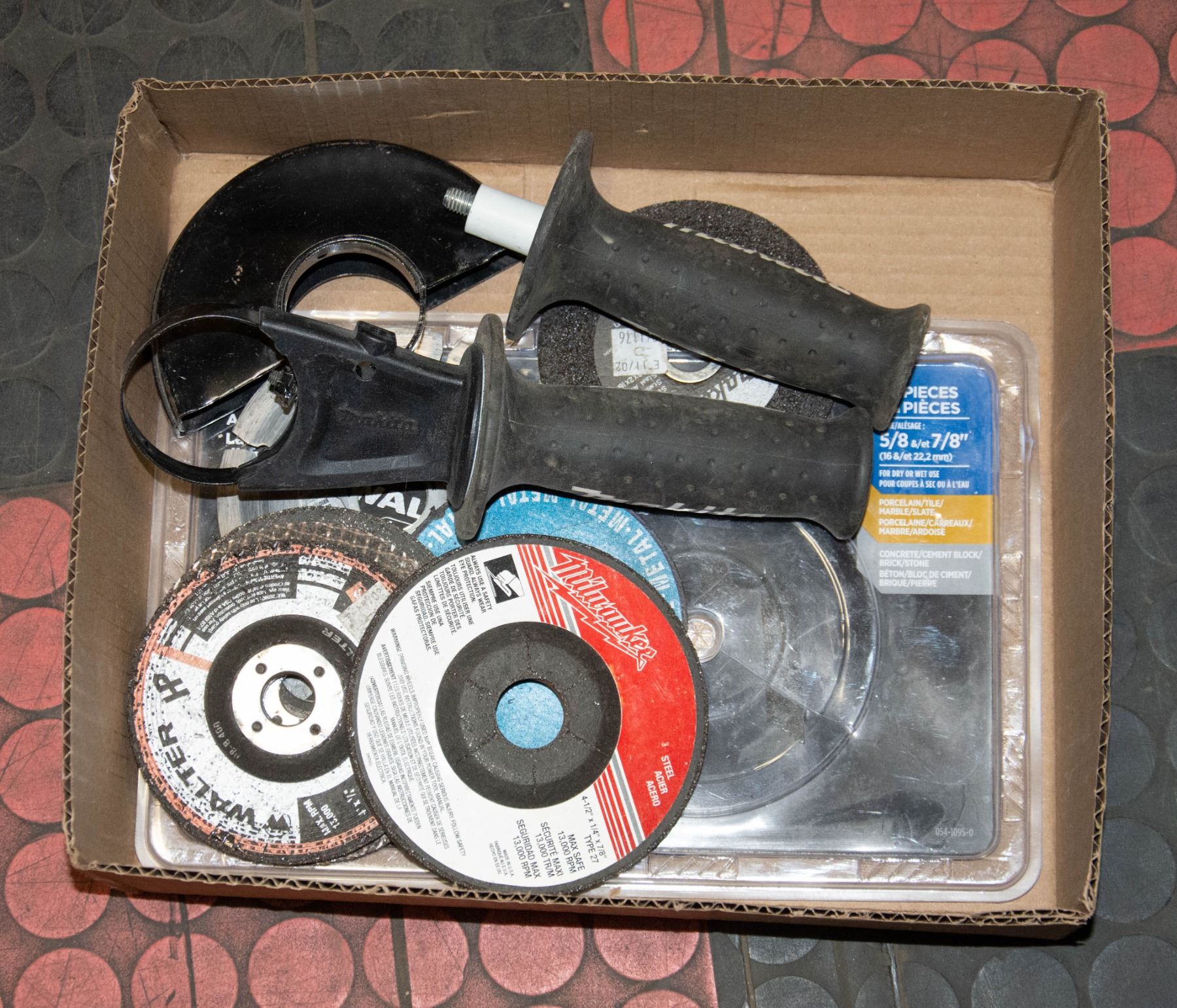 BOX LOT ASSORTED GRINDER BLADES AND MISC