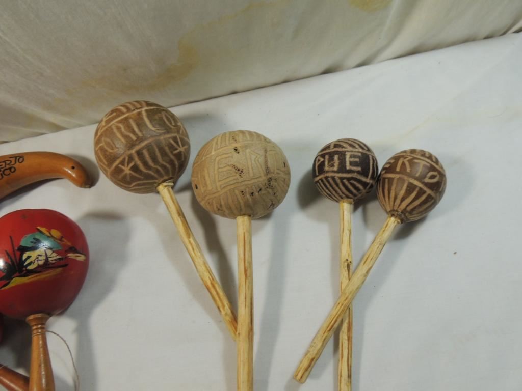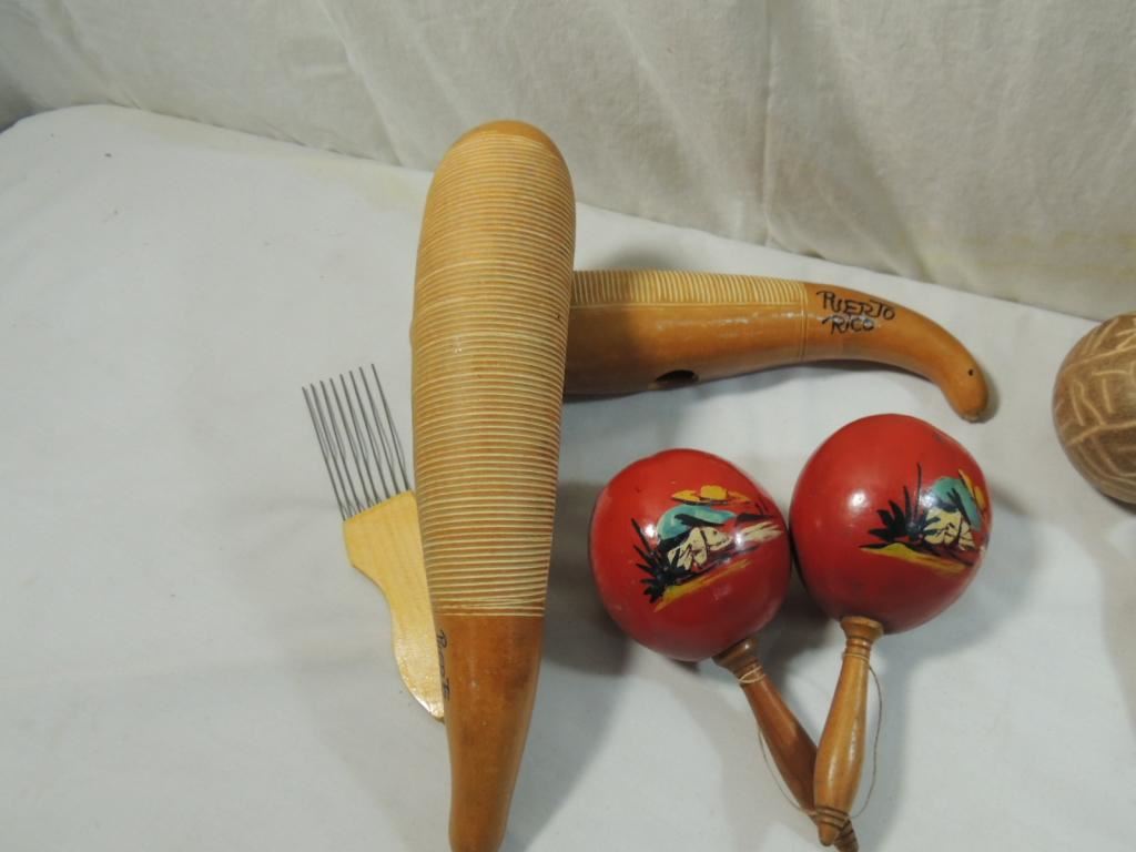 PUERTO RICO HAND MADE INSTRUMENTS, PERCUSSION INSTRUMENTS, HAND HELD INSTRUMENTS, ASSORTED SIZES AND SYTLES MARACAS AS SHOWN SEE PHOTO FOR MORE DETAILS.