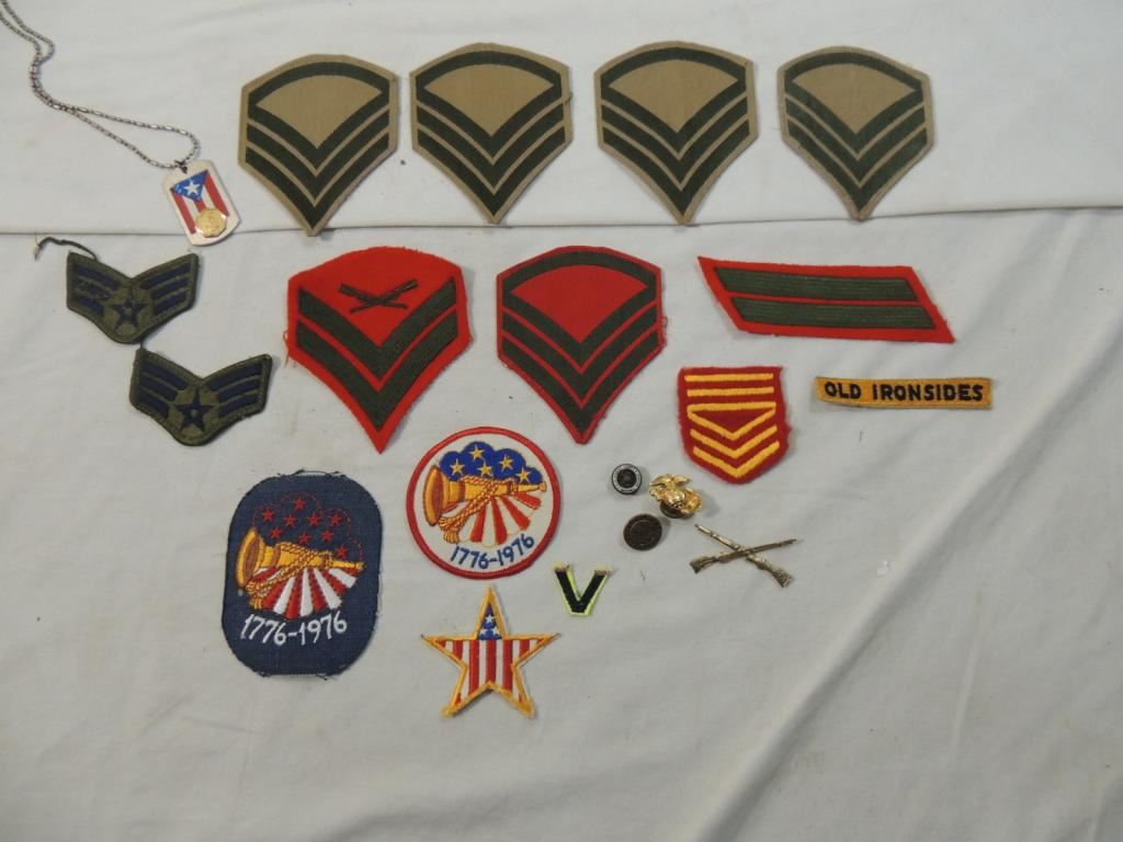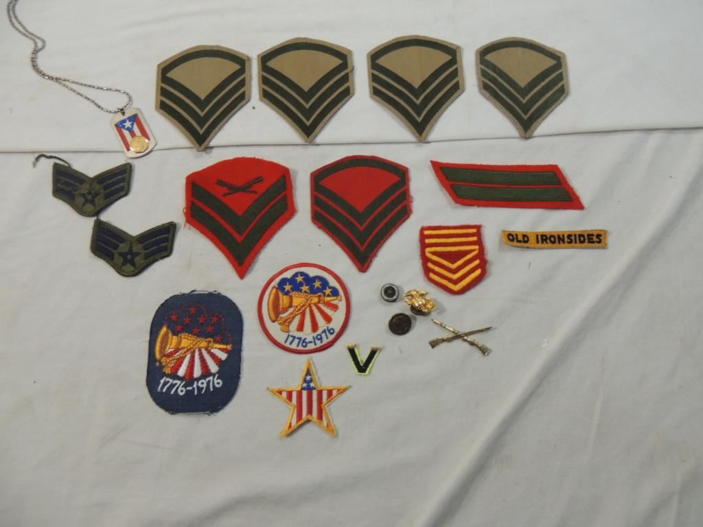 VINTAGE MILITARY PATCHES, ARMY PATCHES, NAVY PATCHES, AIR FORCE PATCHES, MARINES, VINTAGE MILITARY PATCHES AND PINS, AS SHOWN SEE PHOTO FOR MORE DETAILS.