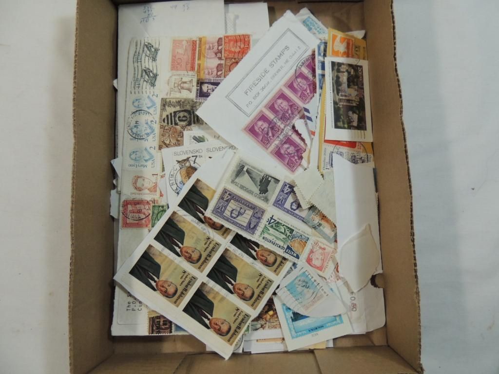 VINTAGE AND NEW COLLECTIBLE STAMPS POSTAGE STAMPS COLORFUL ON PAPER AND SOME OFF PAPER. AS SHOWN SEE PHOTO FOR MORE DETAILS.
