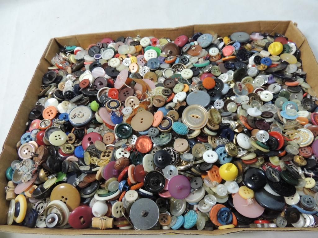 APPROX 1000+ BUTTONS. ASSORTED MIXED BUTTONS. GREAT FOR CRAFTS AND TO HAVE ON HAND. AS SHOWN. SEE PHOTO FOR MORE DETAILS.