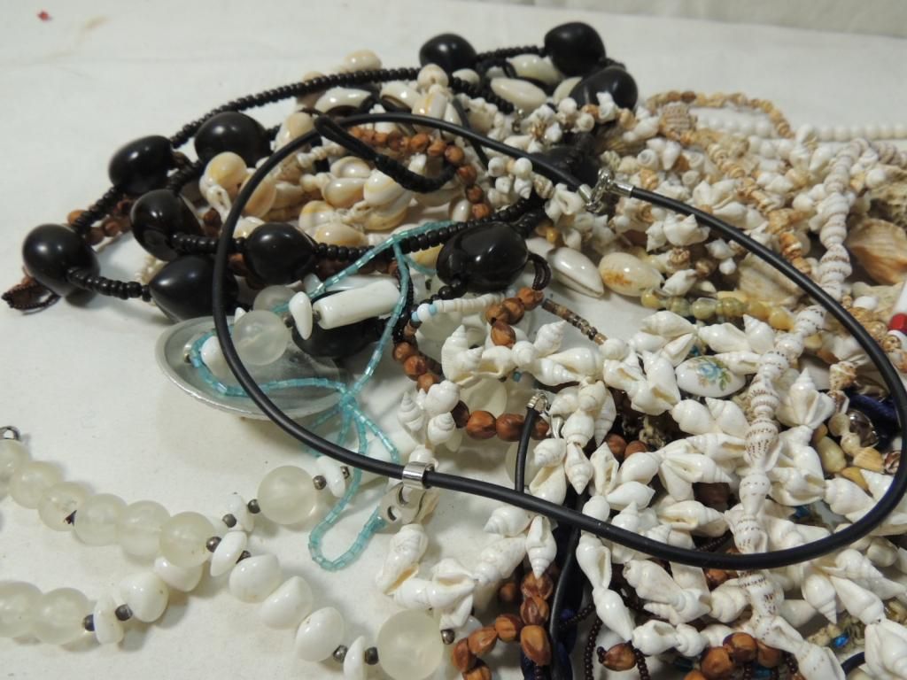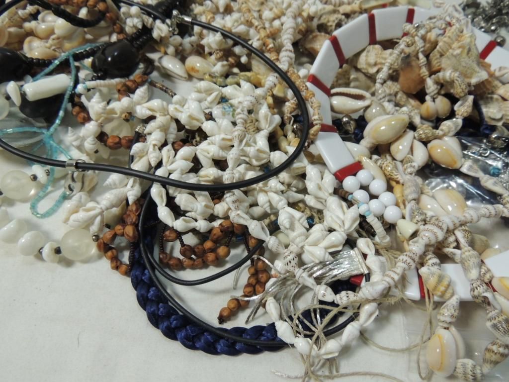 SHELL, HEMP, BEAD, NUT, HAWAIAN ROPE, BEAD. AS SHOWN. SEE PHOTO FOR MORE DETAILS.