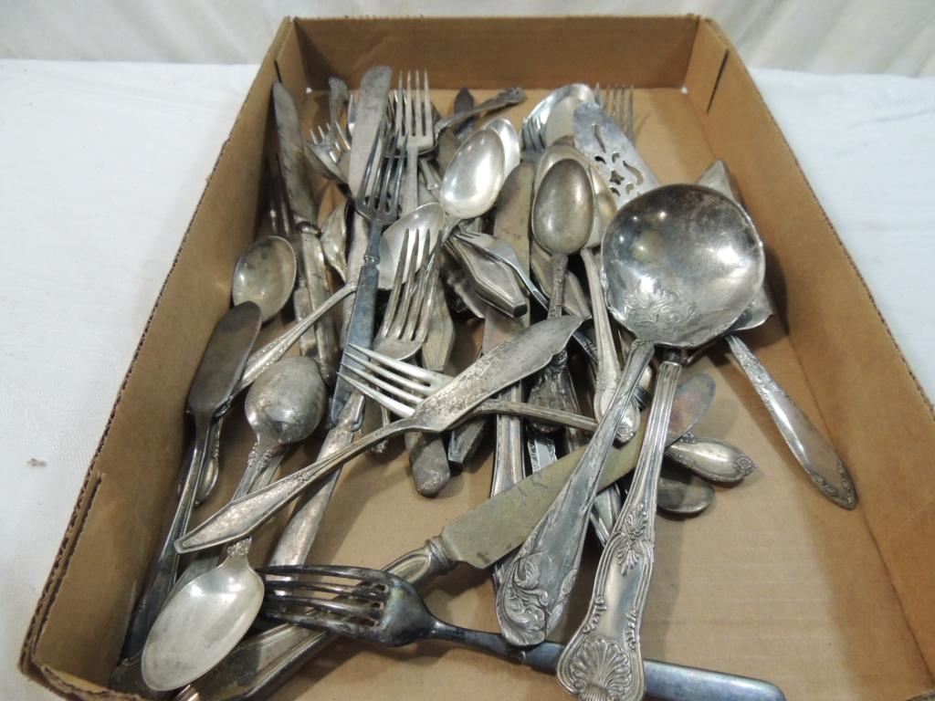 FORKS, SPOONS, KNIVES, SERVING SPOONS, CAKE SERVING KNIFE, BUTTER KNIFE, LARGE SPOON, DECORATIVE DESIGNS, ELEGANT, AS SHOWN SEE PHOTO FOR MORE DETAILS.