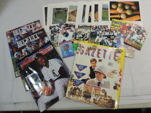 BOX LOT ASSORTED SPORTS COLLECTIBLES: MAGAZINES,