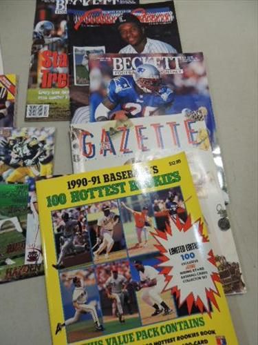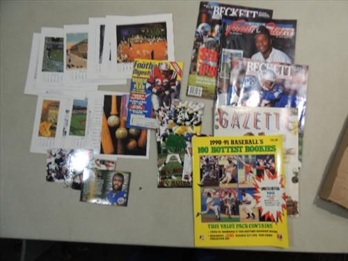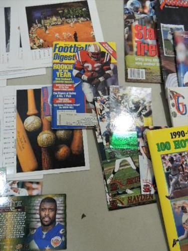 BOX LOT ASSORTED SPORTS COLLECTIBLES: MAGAZINES,