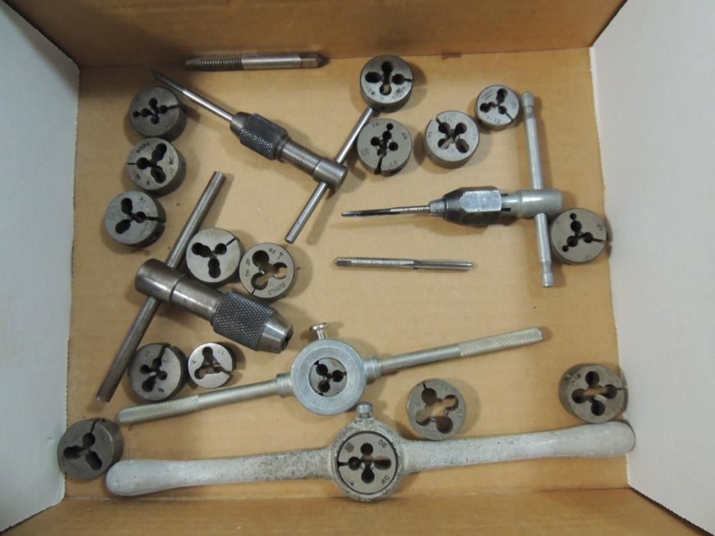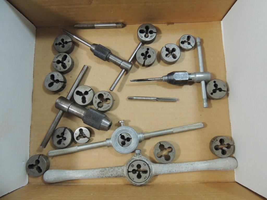 ASSORTED TAPS AND DIE SET ASSORTED TAPS AND DIES MACHINIST INDUSTRIAL AS SHOWN SEE PHOTO FOR MORE DETAILS.