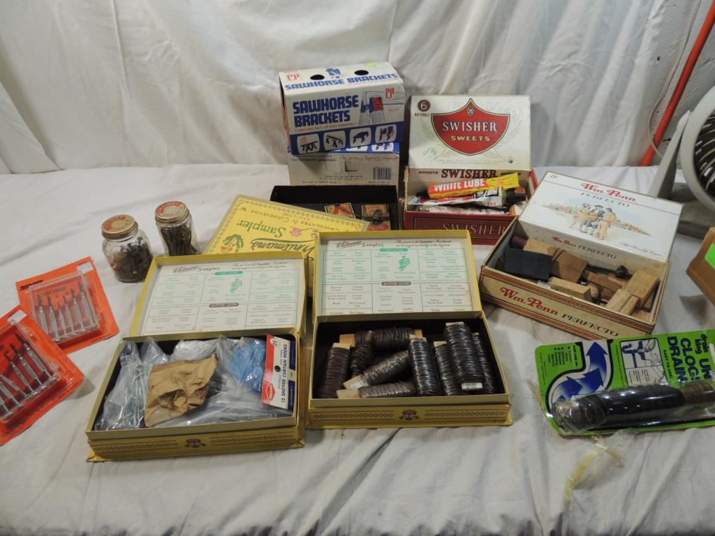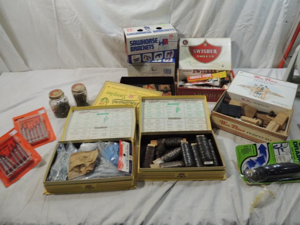 SAWHORSE BRACKETS, GLUE, WIRE, TOOLS, ACCESSORIES, AS SHOWN SEE PHOTO FOR MORE DETAILS.