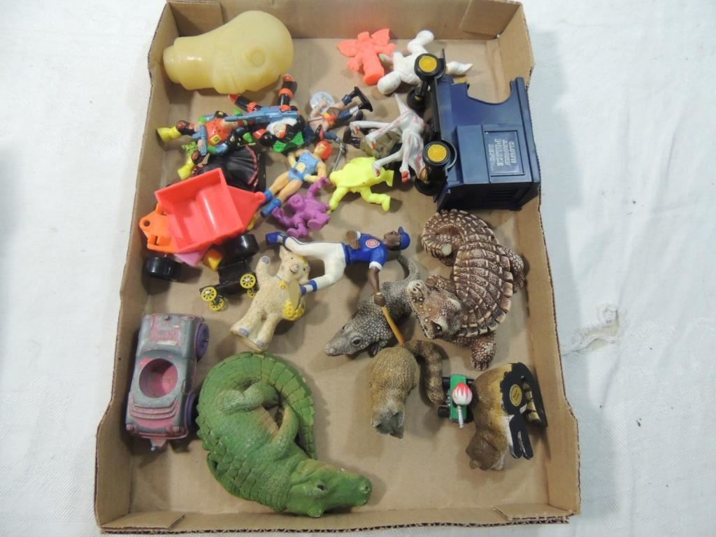 ANIMAL FIGURES, THUNDERCATS FIGURES, CARS, TOYS, COLLECTIBLE AS SHOWN SEE PHOTO FOR MORE DETAILS.