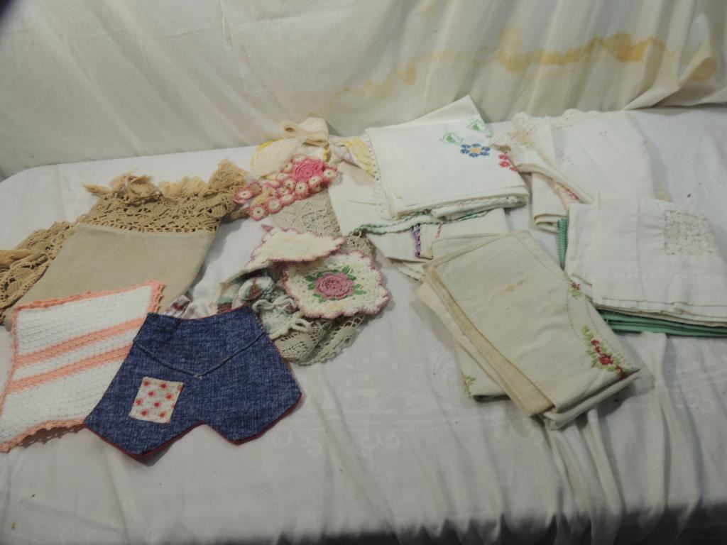 VINTAGE DOLIES, VINTAEG DECORATIVE, LACE, HAND STITCHED, ASSORTED STYLES, VINTAGE, RETRO, ELEGANT, TABLEWARE, VINTAGE LINENS, CROSS STITCH, CROCHET, FANCY WORK, KNIT, LACE, AS SHOWN SEE PHOTO FOR MORE DETAILS.
