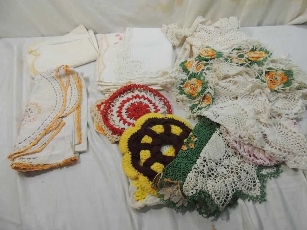 VINTAGE DOLIES, VINTAEG DECORATIVE, LACE, HAND STITCHED, ASSORTED STYLES, VINTAGE, RETRO, ELEGANT, TABLEWARE, VINTAGE LINENS, CROSS STITCH, CROCHET, FANCY WORK, KNIT, LACE, AS SHOWN SEE PHOTO FOR MORE DETAILS