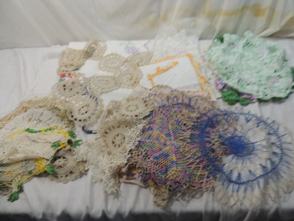 VINTAGE DOLIES, VINTAEG DECORATIVE, LACE, HAND STITCHED, ASSORTED STYLES, VINTAGE, RETRO, ELEGANT, TABLEWARE, VINTAGE LINENS AS SHOWN SEE PHOTO FOR MORE DETAILS.