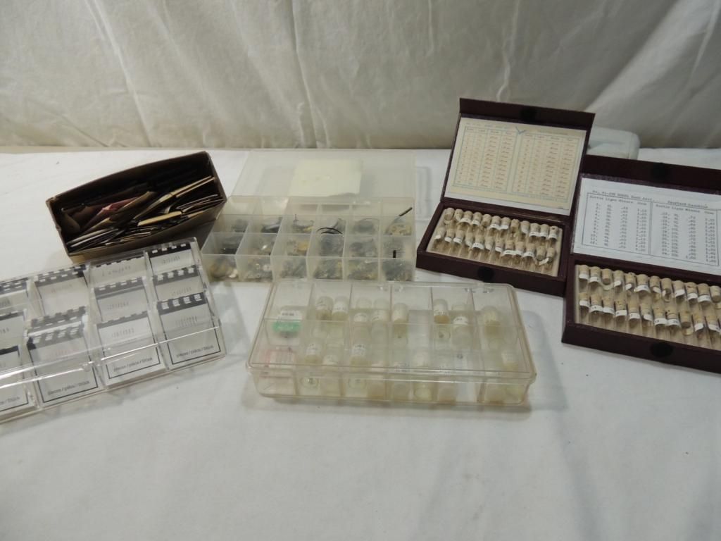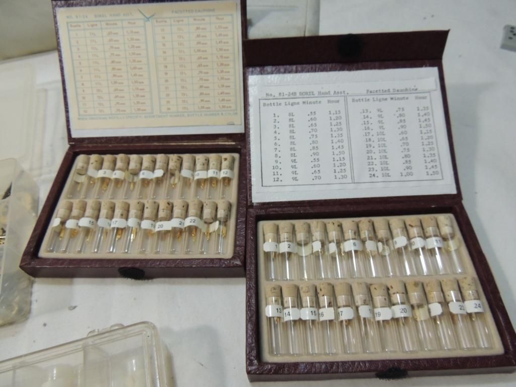 PROFESSIONAL KITS, PARTS, ACCESSORIES. CROWNS, SPRINGS, MIN AND HOUR HANDS. ASSORTED. AS SHOWN SEE PHOTO FOR MORE DETAILS.