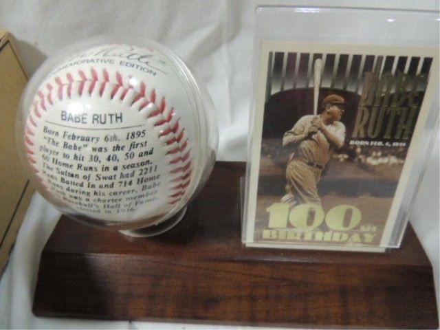 2 BASEBALLS, ONE WITH CARD AND STAND. ONE GOLD CARD. 200TH BIRTHDAY CARDS AND MORE.