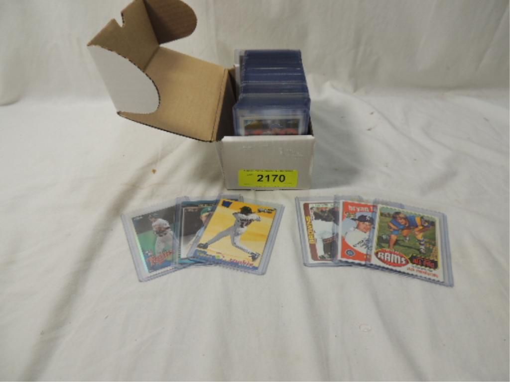 BASEBALL PLAYER AND FOOTBALL PLAYER CARDS. TRADING CARDS. IN SLEEVES. MIXED MAKERS AND DATES. AS SHOWN. SEE PHOTO FOR MORE DETAILS.