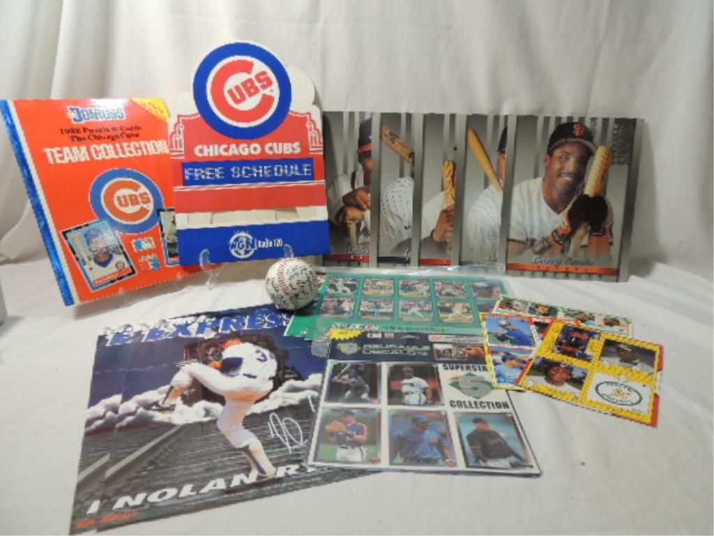 MIXED BOX BASEBALL PLAYER CARDS, BASEBALL PRINT AUTOGRAPHS, NOLAN RYAN SMALL POSTER. AS SHOWN. SEE PHOTO FOR MORE DETAILS.