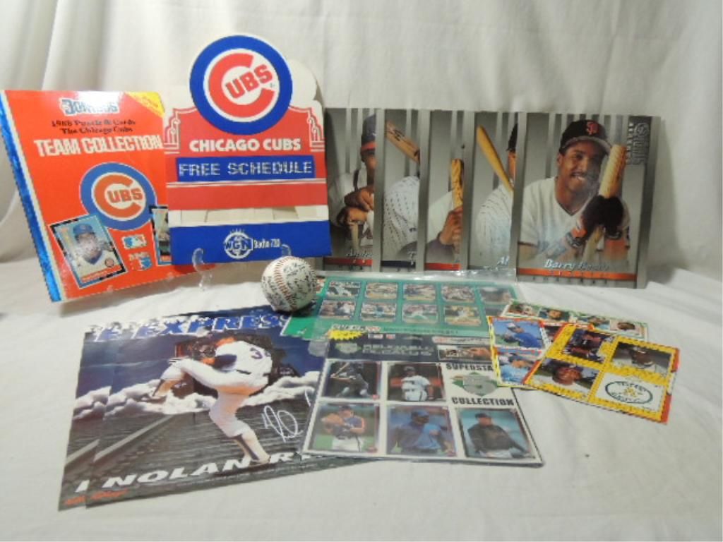BOX LOT BASEBALL MEMORABILIA CARDS, POSTER, BALL