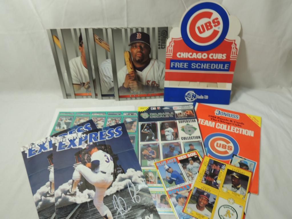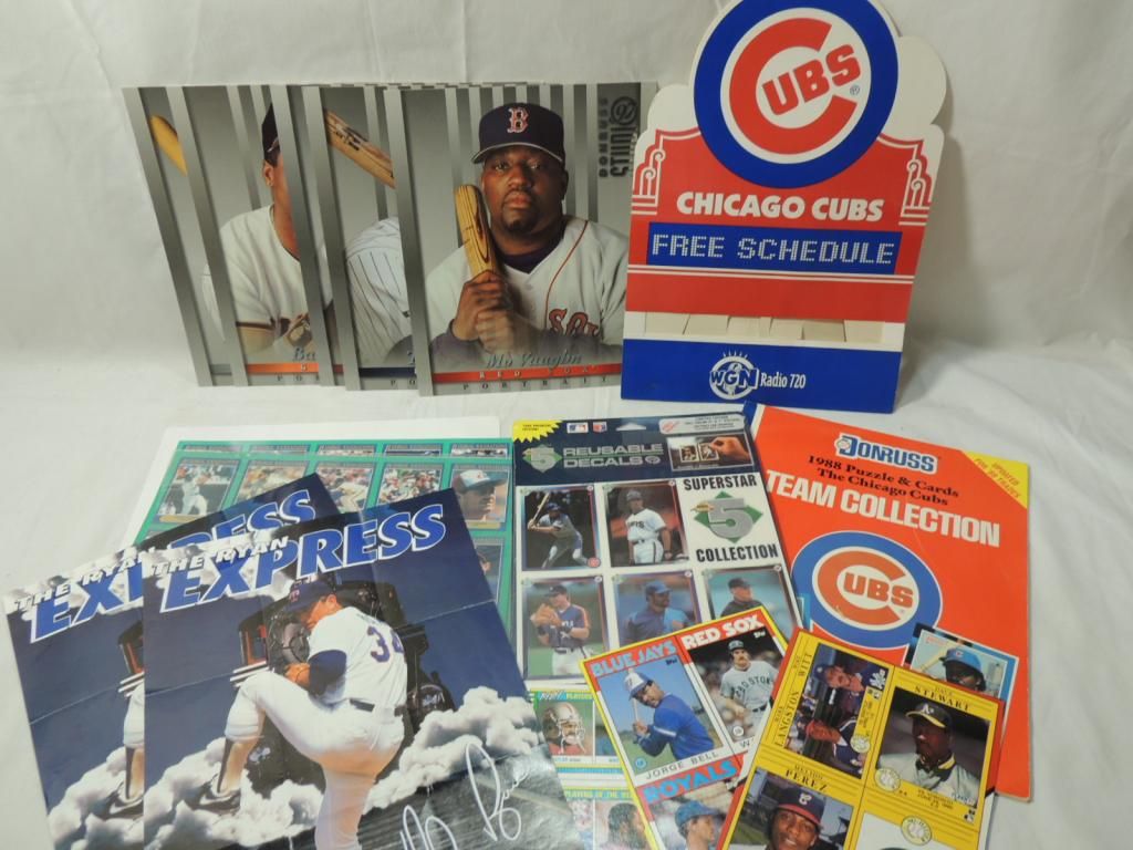 MIXED BOX BASEBALL PLAYER CARDS, BASEBALL PRINT AUTOGRAPHS, NOLAN RYAN SMALL POSTER. AS SHOWN. SEE PHOTO FOR MORE DETAILS.
