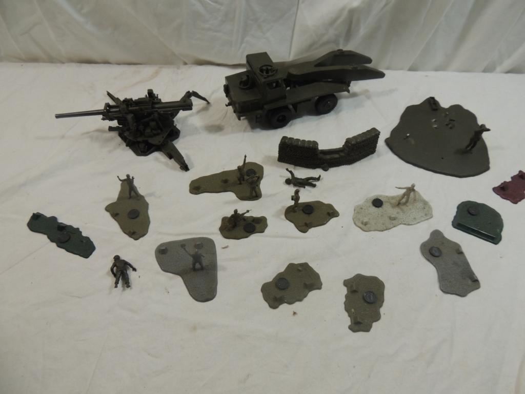 DIORAMA, DISPLAY, PLASTIC FIGURES, TRUCK, FIGURINES, DECORATIVE AS SHOWN SEE PHOTO FOR MORE DETAILS.